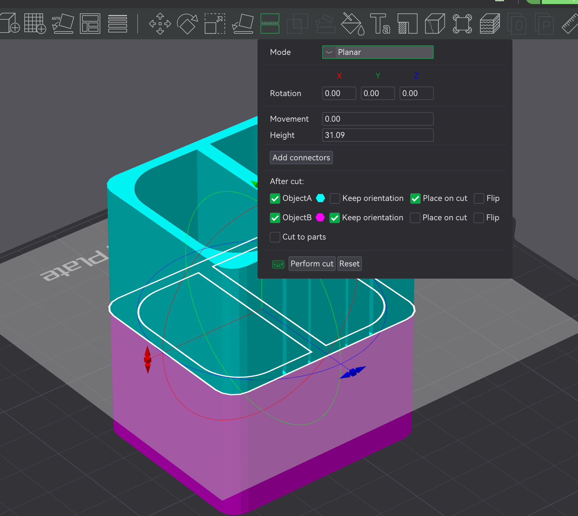 小さなもの(構造的に分割したいだけの時)は基本Planerでカット。使ってもDovetailのFlap Angleを90度で複雑な構造は避ける。